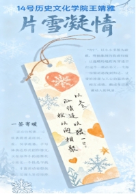 此次活动为同学们搭建了情感表达与才华展示的平台,拉近了师生及同窗间的距离,营造了温馨的校园氛围。未来,学院将继续推出更多有温度、有内涵的文化活动,丰富校园文化生活。冬雪覆阶凝雅韵,书签载意传温情。近日,皇冠集团网站“片雪凝情,一签寄暖”书签活动圆满完成全部环节,在墨香与雪韵的交融中温情落幕。这场以雪为媒、以签为载体的文化盛宴,将冬日的清寂与人心的温热相融,为学院冬日文化生活注入了别样的诗意与暖意。