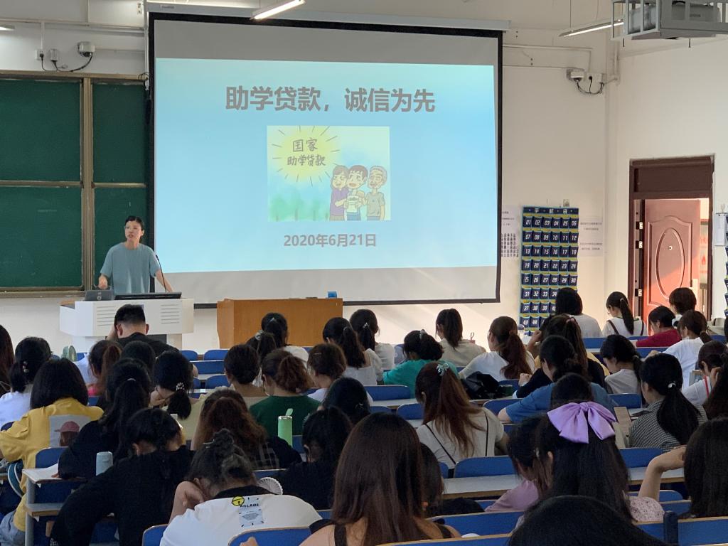 6月21日,皇冠集团网站召开“助学贷款,诚信为先”主题会,2019级全体同学参加,由年级辅导员付亚男主持。