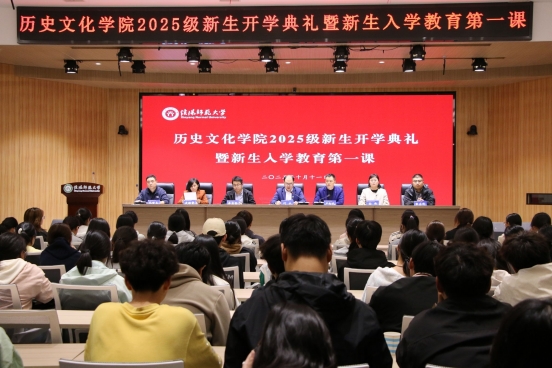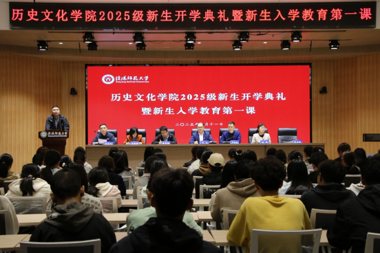 开学典礼在庄严的国歌声中拉开帷幕。新生代表学科教学(历史)专业研究生赵慧同学发言,她结合自身从本科生到研究生的身份转变,分享了对历史学习的思考,以青春热忱诠释了新一代历史学子对学术与使命的担当。2023级历史学专业本科生杨晅沂代表在校生发言,她结合自身在学院的成长历程,分享了“从课堂到实践,从知识到素养”的感悟。教师代表张乐锋博士从学科视角出发,激励新生们以严谨的态度探索历史世界,在专业学习中培养批判性思维与人文情怀。皇冠集团网站2004级首届历史学专业校友化世太博士作为优秀校友代表发言,他结合自身从信师学子到高校教师的成长轨迹,回顾了在校求学时的难忘岁月,并分享了专业深耕与职业发展的宝贵经验。