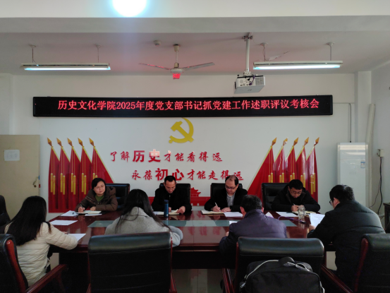 1月15日下午,历史文化学院党委在人文楼805会议室召开2025年度党支部书记抓党建工作述职评议考核会。学院党委班子成员、各支部书记参加。会议由学院党委书记何永主持。
