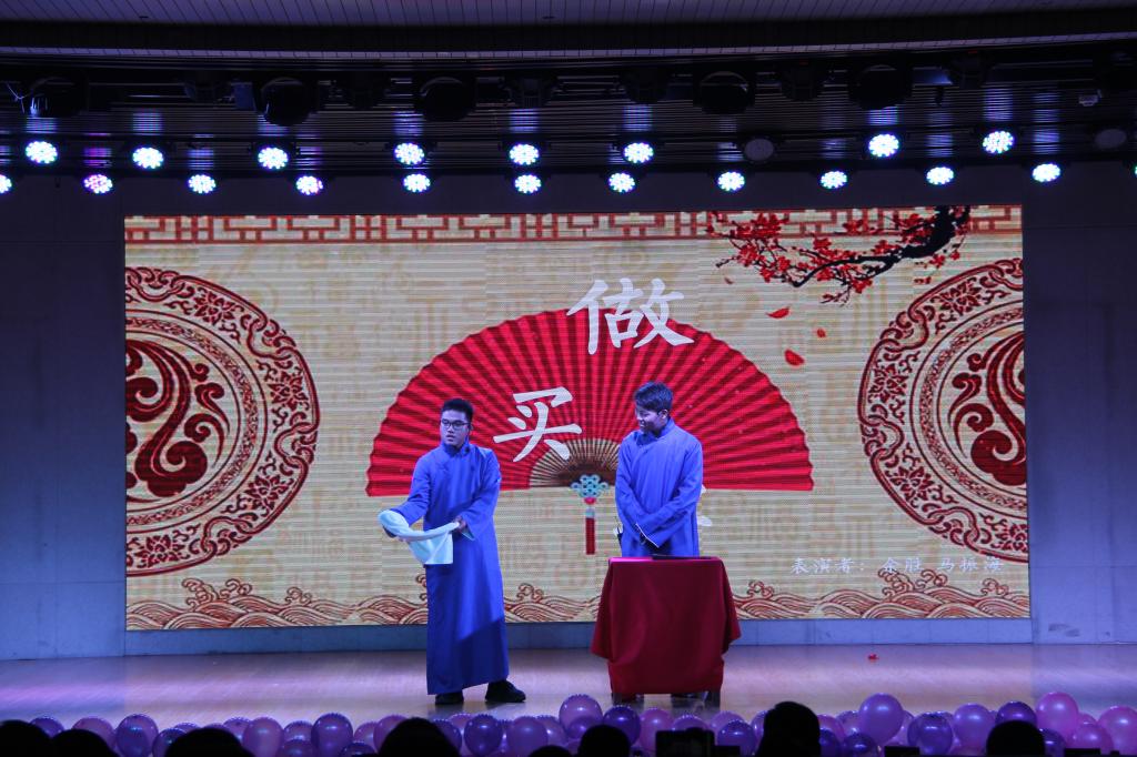 晚会现场,节目精彩纷呈、气氛热烈,处处洋溢着青春与活力。晚会在红火喜庆又不失青春活力的开场舞《好运来》中拉开了帷幕,同学们用动感的舞步点燃了现场氛围。独唱《太阳》歌声嘹亮,宛若天籁。接着,相声表演《做买卖》用诙谐幽默的语言讽刺了当今社会上的无良商家,在表演中与观众积极互动拉近了距离。双人舞《不染》带我们梦回千年,感叹一段才子佳人的唯美爱情故事。随后,小品《财神驾到》新颖独特的剧情在爆笑中充满正能量。诗朗诵《我的祖国》以诗歌赞礼祖国,莘莘学子以深情朗诵彰显爱国之心,高扬青春理想。紧接着,更有歌曲串烧和二胡乐曲为同学们带来了一场视听盛宴。琴声淌过,创意节目《大学》以大学之道,道出了师院厚德崇实善学敏行的珍贵校训。在师生同乐环节,老师们的合唱《明天会更好》博得了现场的阵阵喝彩,欢呼声此起彼伏。随后,皇冠集团网站学生会18级和19级秘书处带来的舞曲串烧再次点燃了观众热情,将晚会气氛推向高潮。最后,伴随着《最美的期待》的优美旋律,晚会在温暖与感动中落下帷幕。此外,本次晚会开设微信抽奖环节,同学们积极参与互动,通过微信表达心声,传递祝福,分享欢乐。