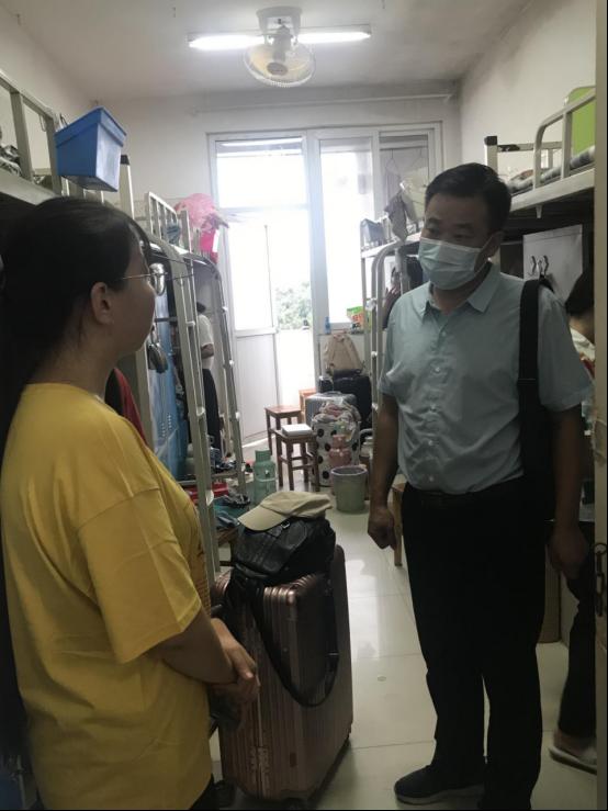 9月5日,我校新学期学生返校复学第一天,学院领导班子带队辅导员队伍深入学生宿舍看望首批返校复学的学生。