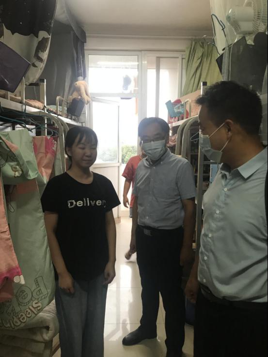 每到一个学生宿舍,院领导都会与同学们亲切交谈,详细询问同学们的学习、生活情况,了解他们的假期安排和未来打算,对返校期间需注意的防护事项及学习生活再一次进行要求和叮嘱