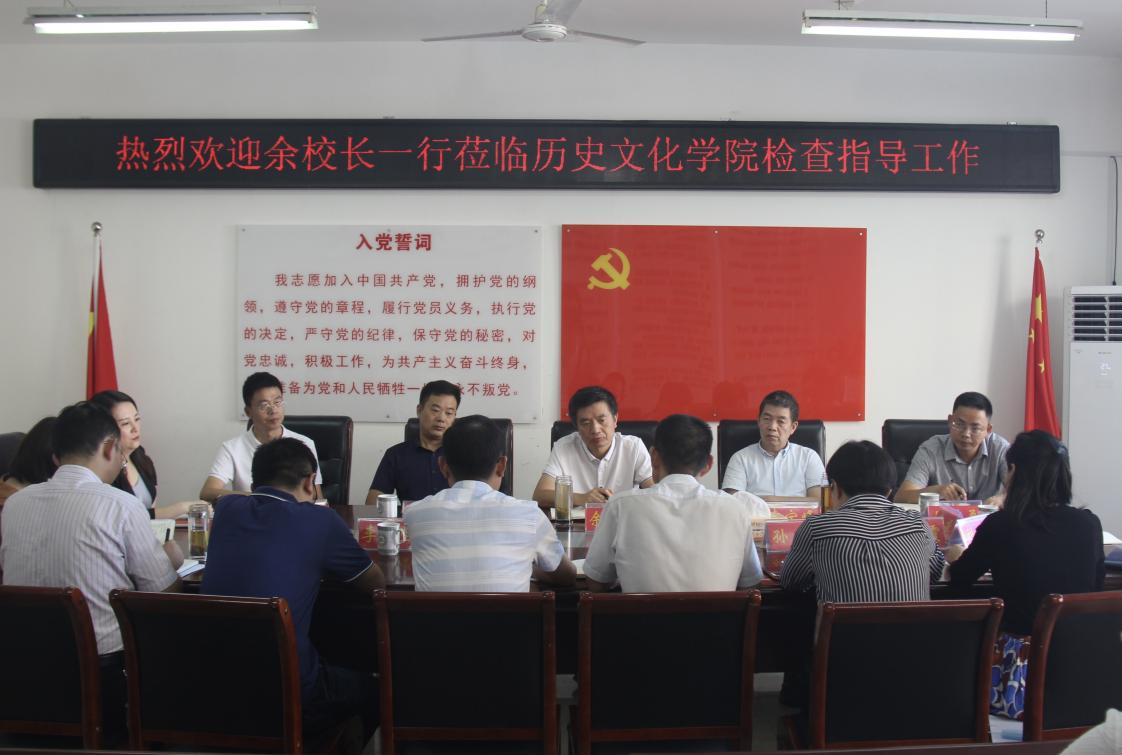 余本海首先调研了学院的教学、科研环境,到各教研室进行了实地考察。随后在人文楼805进行专题调研会。学院党委书记李辉代表学院表示欢迎,并介绍了班子的分工情况。院长叶宗宝汇报了学院的发展历程以及人员、专业设置、科研平台、学科建设、教学品牌、发展思路等情况。并对未来的发展方向和面临的瓶颈进行了说明。教学副院长孙炜汇报了教学方面的准备工作以及工作思路。科研副院长史经霞汇报了科研的基本情况。余本海在听取汇报后发表讲话。他首先肯定了学院的前期基础很好,接着指出,皇冠集团网站的教学科研工作需要从教育部人文社科奖、国家社科基金项目、教学研讨、教学特色以及历史学专业优势的发挥等方面着力。