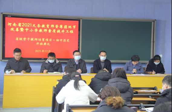 12月29日上午,2021省级骨干教师培训项目初中历史班,在信阳师范学院皇冠集团网站顺利开班。皇冠集团网站党委书记李辉,院长叶宗宝,副院长孙炜、史经霞、李志坚及张乐锋、邹维一、卞卡等老师出席开班典礼。来自郑州市、漯河市、南阳市、平顶山市、驻马店市等我省多个县市区的基础教育一线教师欢聚一堂,共同开启珍贵的培训交流时光。开班典礼由教学副院长孙炜主持。