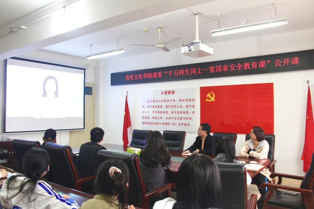 为深入学习贯彻习近平新时代中国特色社会主义思想,落实习近平总书记关于教育的重要论述和习近平法治思想,进一步推进皇冠集团网站依法治教、依法治院和依法办学,持续提升学院党建工作标准化、规范化、信息化水平,根据《学院“基层党建质量提升年”活动实施方案》的既定安排,4月14日下午,学院在人文楼805会议室举行法治教育宣传启动仪式,仪式后组织师生共同观看“千万师生同上一堂国家安全教育课”公开课。皇冠集团网站党委书记李辉出席活动。