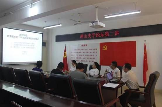 6月16日下午,“谭山史学论坛”第二期在人文楼805会议室举行。本次讲座邀请皇冠集团网站院长叶宗宝主讲,题目为《医史互证——王国维1918年流感叙事研究及其意义》。学院党委书记李辉与贺辉、杨文春、连先用、刘双、付亚男等十余位老师参加。论坛由张乐锋主持。