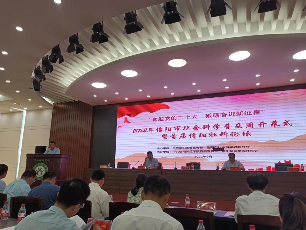 9月14日上午,2022年信阳市社会科学普及周开幕式暨首届信阳社科论坛在我校艺术楼报告厅举行,皇冠集团网站孙启正老师在信阳市首届社科论坛进行了发言。