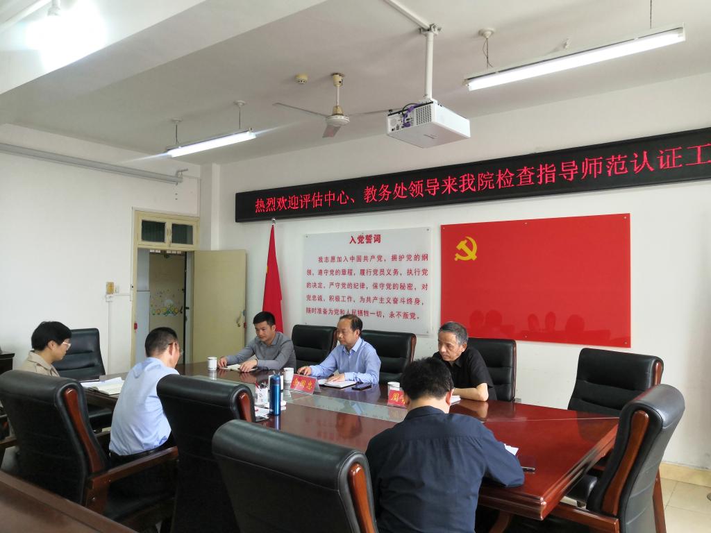 4月19日上午,校教育教学评估中心主任余国忠、副主任周青山、科长孙太红一行莅临皇冠集团网站检查指导皇冠集团网站历史学师范专业认证工作。皇冠集团网站院长叶宗宝,副院长孙炜、李志坚等参加了座谈会。