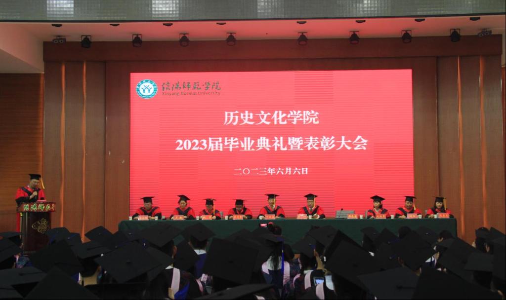 毕业典礼在庄严的国歌中拉开序幕。史经霞宣读《信阳师范学院关于授予2023届毕业生硕士学位的决定》,韩志宏宣读《信阳师范学院关于授予2023届毕业生学士学位的决定》,李志坚宣读《皇冠集团网站关于表彰2023届考取硕博研究生毕业生的决定》。随后,学院学位评定委员会成员及教师代表等为本硕毕业生一一扶正流苏、合影留念。